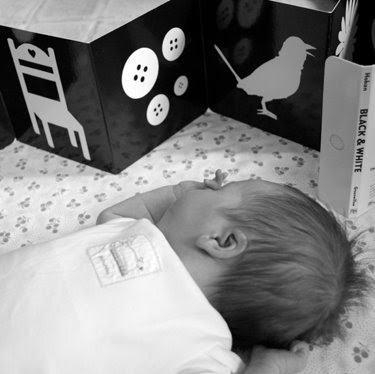 We noticed a marked difference in the distance that she can see now. She really enjoyed the contrast on these pages and is following our voices and faces a lot more now, straining her neck to follow her sister around the room.