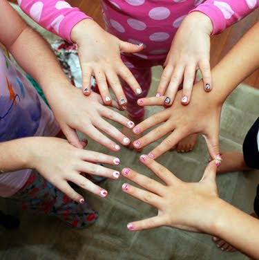 Lots of teeny tiny nail art occurred, plus a lot of eating and giggling and painting and pj wearing. I highly recommend the pretend sleepover idea, where everyone goes home to their own bed. Less than ninety seconds after declaring the party a success, the birthday girl was fast asleep. Next big event, this girl is hired.