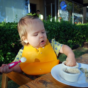 When the first appetizer was placed on the table, someone stood up in her high chair, placed her hands on the table and said “Whoa!” She proceeded to eat every kalamata olive off the top and then scooped the hummus out by the fist full. The fork was just for show.