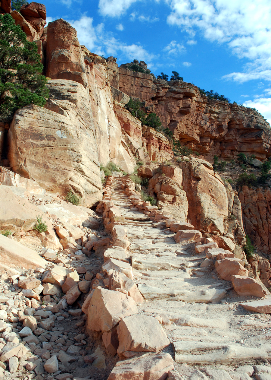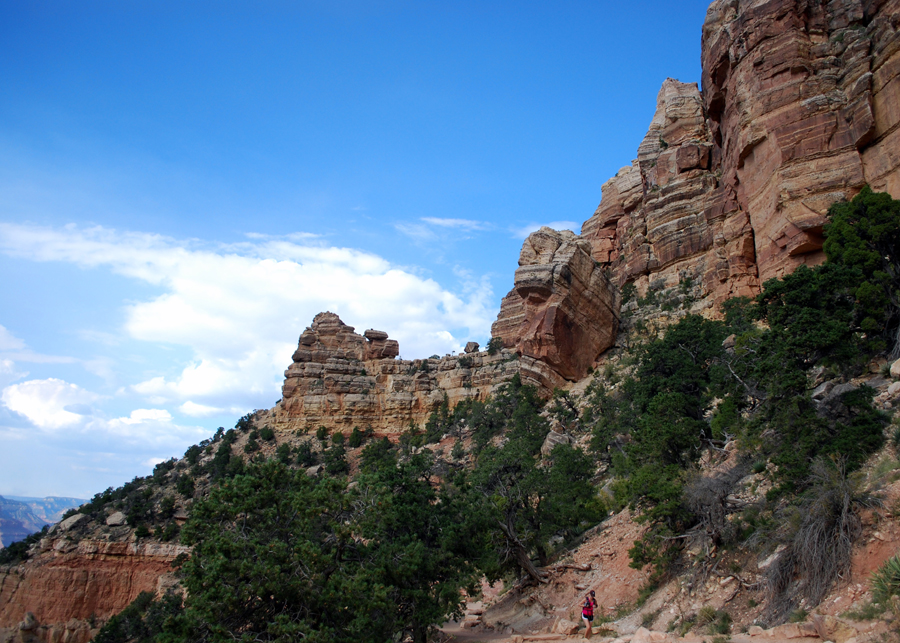 Eventually, what goes down must now go up, and you wind your way back up the trail, switching back and forth up the face of the cliff, switching leg muscles as well, and feeling the full affect of the afternoon sun and little shade. And the views continue to change, and the sun goes lower in the sky, and you see tiny dots of color and little backpacks winding their way up to the rim and you know that you’ll be there soon too, and glad that you took the time to see a tiny piece of this grand place with your best friend.