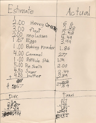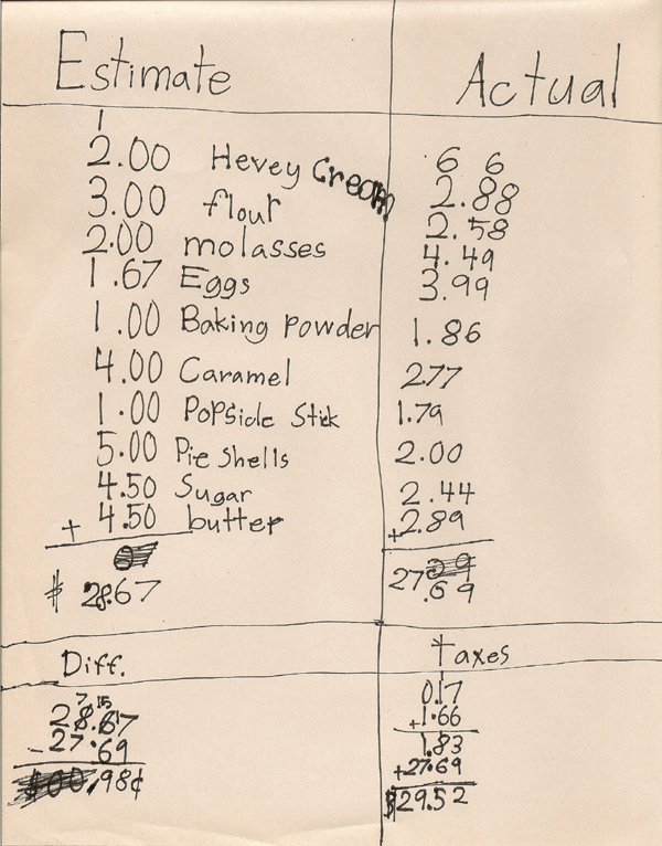 This assignment was from a few weeks back. We had tons of apples from the orchard, and E was to help make the grocery list for the week, estimate the costs of the items, shop for the items, and then compare the actual prices to her estimates. We decided to focus on our apple abundance, and pulled down several cookbooks that we like. E looked up apples in the index, read through the recipes, selected three that she liked, and called out the ingredients to me. If we didn’t have those ingredients, or didn’t have enough on hand, she wrote them on the list, and went from there. I thought her numbers were way off – but in the end, they all evened out and she was just ninety-eight cents off her total. The added bonus of this assignment? A new favorite recipe – Apple Chunk Double Gingerbread. We’ve made it at least a half dozen times since then, and she can’t eat enough. We’re making more this weekend – I’ll post the recipe. It’s a winner.