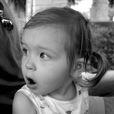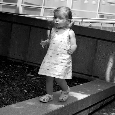 A little trip down memory lane – the photo above is E at the garden six years ago. In the same dress. In the same pigtails. With the same toddler look. Bow on the opposite side.