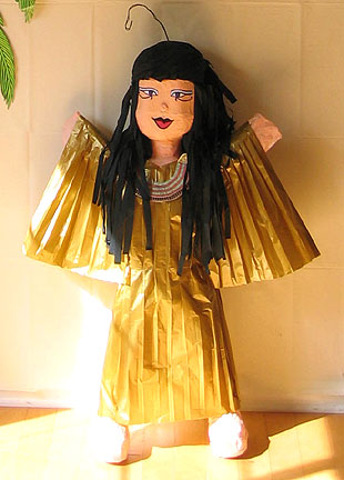 The final purchase for the party – one hula girl, soon to become one Golden Isis pinata like the one in the last photo. Although I am a little weirded out by the idea of taking a baseball bat to such a lovely princess (and we have a friend with the same name!) it will be fun to see the gold chocolates and shiny ring pops falling out.