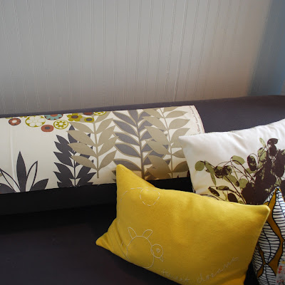It looks great with the things that she already has – particularly the couch that it will frame, and the collection of pillows that reside on that couch. It’s a vertical print that I think will look good in a floor to ceiling curtain, with just enough color and just enough white space to not overwhelm.