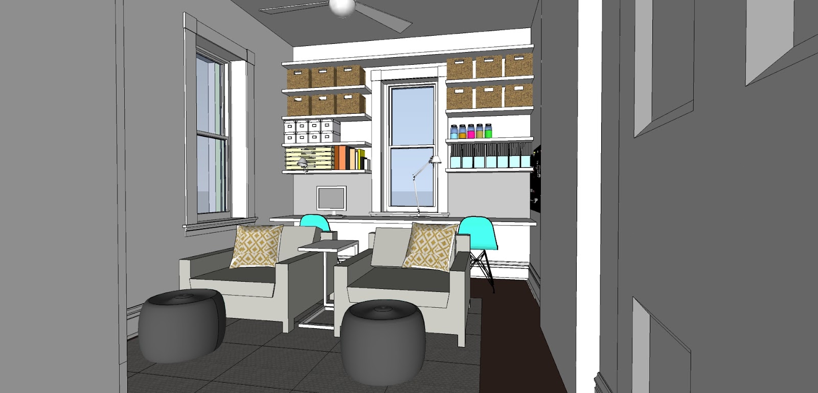 We really, really need a small studio space to house the computer and the various projects we have going on at any given time. And we need the storage space to organize the materials for those projects so we know better what we have on hand and what we need to get for any given project.