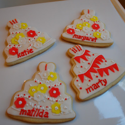 I did cookies this week for a party that was celebrating four kids’ birthdays – they were having a backyard barbecue, and it was fun making individual “cakes” for each one. The ladybugs and flowers were for the rest of the gang. Perhaps I should have done raincoats and umbrellas since it was raining! by party time. Rain! Rain!