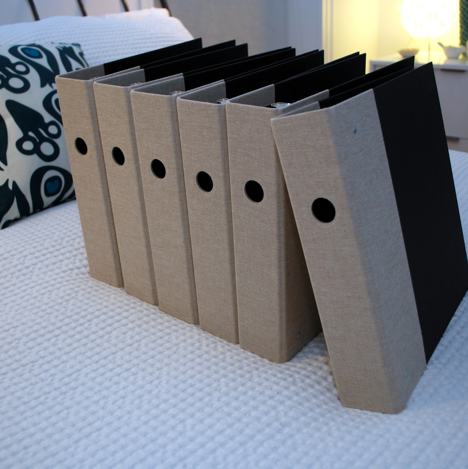 This Friday finds me with my new binders. I’m pretty excited about them, although I know it means I’ve got a lot of work ahead of me. They are covered in a warm gray linen and I swear they look exactly like the chairs in the back room where they now reside on the shelves. Happy coincidence.