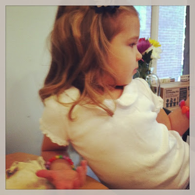 On Sunday: F’s scrunched up her nose in concentration as she tries to recall the name of the holiday. All morning long she’s been discussing the day and how we’re going to celebrate it, except she never pronounces the word “celebrate” correctly, and it comes out in a slightly different form each time, ellerate, ahlerate… Now she’s muttering under her breath a list of holidays that she knows aren’t right.