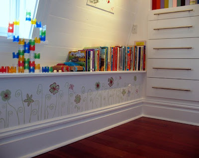 Lynn – I painted those flowers on the short knee wall – the inspiration came from a card I received in the mail from a friend. (I painted those after E was born – in fact, I used to paint while she was napping in there!) Somewhere I have a photo of her catching me in the act while she was supposed to be sleeping. 🙂