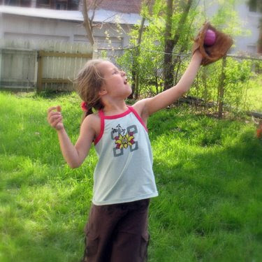 softball practice Posted on April 19, 2009 by thirdstoryies Catching and throwing practice is going well. “Sporty clothes” help, you know. First game is Monday!