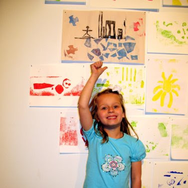 Last Wednesday was E’s final string performance of the year, and it was held at Mad Art Gallery, near her school. The work that the students had done throughout the year in their studio classes were on display, and it was a really nice evening for the arts. She was particularly proud of the printmaking projects they had done – hers was titled “City” and was inspired by her dad and his office in the tallest building downtown. Another piece of hers was titled “Storm” and was a series of shapes representing roofs flying around in the wind. The violin pieces were great – it’s really amazing what they’ve accomplished this year. Can’t wait til next year to see what these kids do. Another reason to love a school that emphasizes the arts – from the performing to the visual to the language to the culinary. You’ve got to love a school with a day that includes at least three subjects that end in the word “arts”.