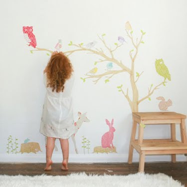 And below is something I’ve been eyeing for her room as well – at least the tree part. They are handmade with fabric, and adhere to the wall, but can be moved around repeatedly. I was thinking of using them in the room and adding some handpainted touches with growth markers – we’ve never really had a true growth chart around here for the girls. And since we discovered tonight when we tried on the 0-3 month pajamas on F for the first time…yeah, well…those are going right back in the bin. Apparently we’re skipping that size entirely – because growing we are.