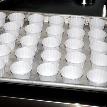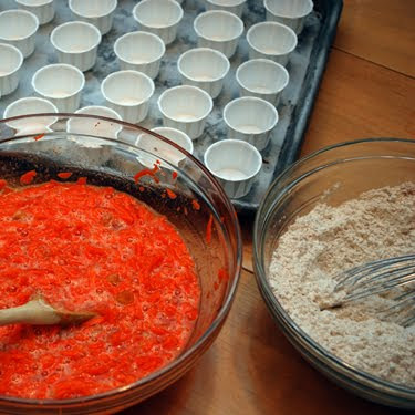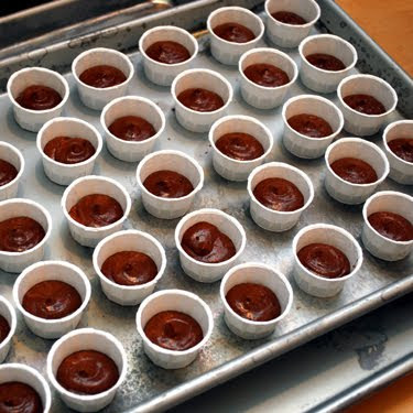 The last few days have been a complete whirlwind and it’s 4:30 in the afternoon on Saturday and I’m just starting to catch my breath. The firm that I work for (and have just returned to after maternity leave) is celebrating its five year anniversary, and the completion earlier this year of a new office building in a fully restored, beautiful old building. Last night we hosted an open house at the building, and everyone in our firm contributed an amazing amount of work towards the event from the invitation designing and visual media and music to the absolutely incredible spread of food and drink. Even E donated her pumpkin which held open the front door so that the smell of the fire pit burning at the entrance wafted into the space. It was a really crisp fall evening and everyone seemed to enjoy the party immensely. I offered to do desserts and so much of my week this week was devoted to shopping and then testing and then baking and then icing and then transporting three trunk loads of these tiny little goodies. Five hundred, give or take a few eaten along the way. All the recipes were from one of my favorite blogs Cupcake Bakeshop, which was on hiatus for awhile but is back in business. The cupcakes were baked in Wilton’s Nut and Party mini cups, which I think look great and also allow the baking of forty at a time on a large cookie sheet.