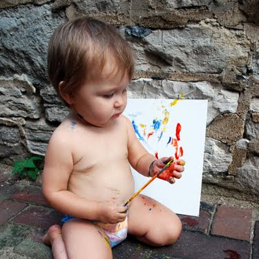 This was E as a baby taken shortly after her first outdoor painting adventure.