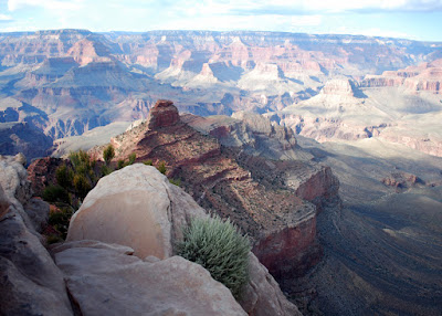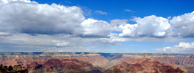 With a work conference in Las Vegas scheduled for mid-October, we decided awhile back to postpone celebrating our tenth anniversary for a few weeks and tacking on a few days of our own to that trip. We flew in to Las Vegas and then drove out to Boulder City last Friday night. The sleepy little town apparently closes up around 10pm, and seems a world away from the the bright lights of the neighboring city. Even sleeping in the next morning put us wide awake at an early hour on Pacific Time, and we headed out of town towards the Grand Canyon. We had to take a longer route there due to road closures for the ribbon cutting ceremony at the new bridge over Hoover Dam (more on that tomorrow), but the drive was scenic in that sort of brown, rocky, desert kind of way, and took us through towns named Searchlight and Bullhead City and in and out of Nevada, California and Arizona.