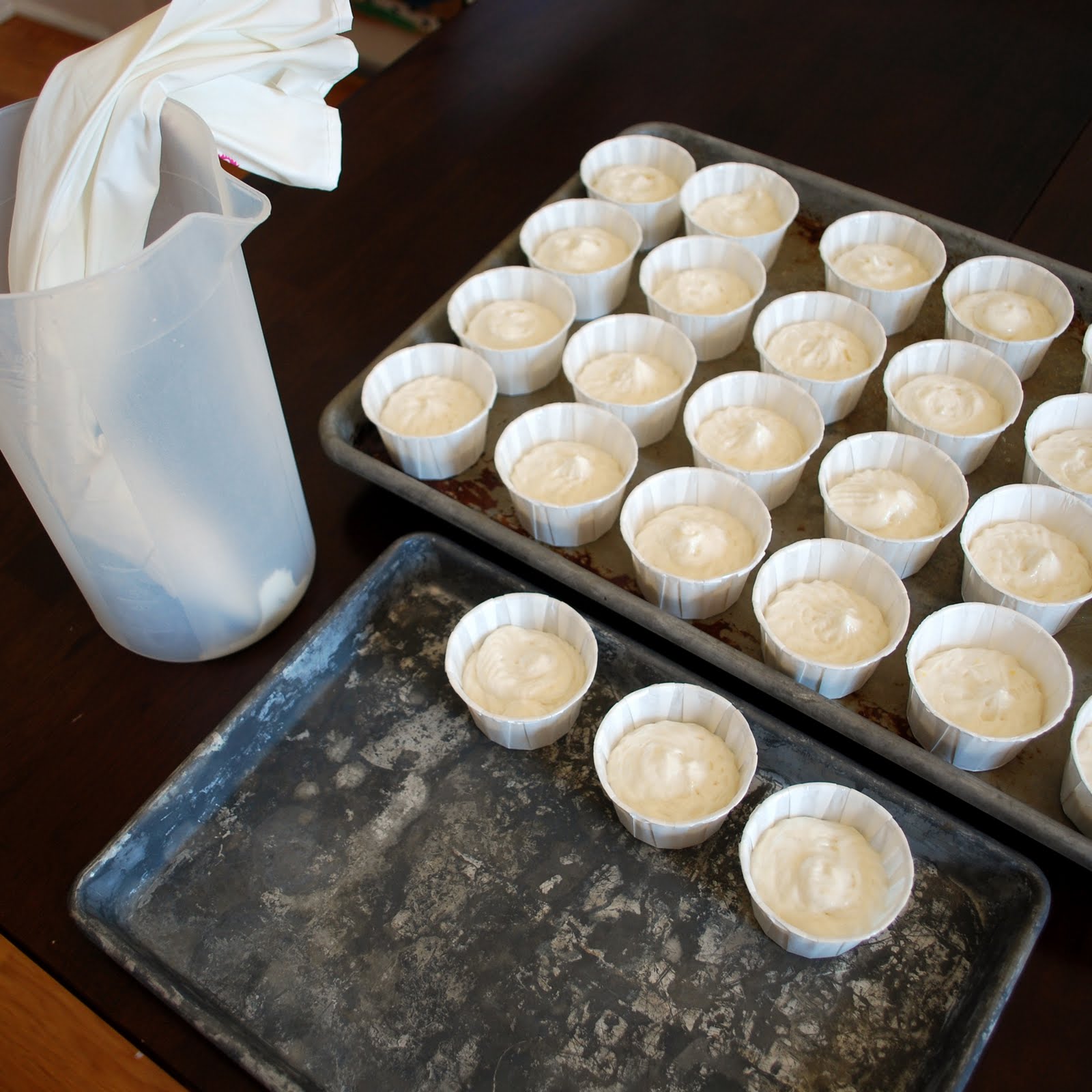 Happily filled liners and one depleted pastry bag, ready for the next batch.