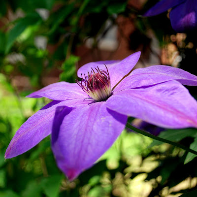 And finally, some purple in our garden. Climbing, flourishing clematis. Proving that if you can just get yourself high enough in this yard, the weeds can’t overtake you.