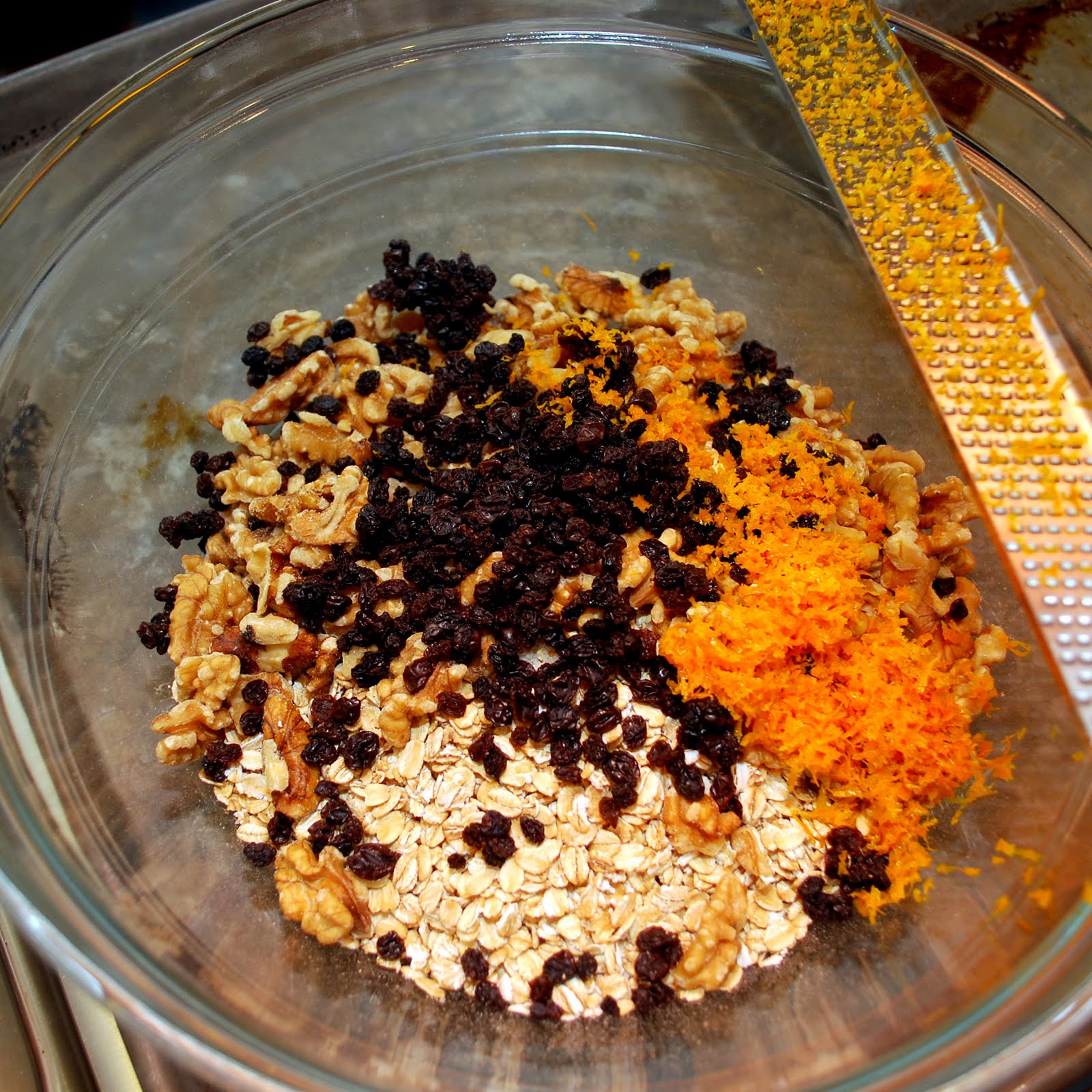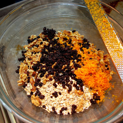 I know it’s a little lame, and my friend P is all like “homemade granola is so yesterday” since she’s always got a batch coming out of the oven, but it is sort of new to me. Well, maybe not new, but overdue. And after a long, long, so very long day of meetings (which, to be quite frank, is also sort of lame for a Sunday, even though one was at the house of the aforementioned P), and then a drive home in the cold rain that is closing out what used to be a lovely weekend of weather, the experience of puttering around the kitchen is just what I needed. That, and apparently, really long run-on sentences.
