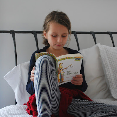 Side note about the book she’s just about to finish in that shot above. She has a four-week assignment for school that required her to select a book off her shelf that she hadn’t read yet. She had four, but struggled to pick which one. First she read the summary on the back of each book out loud to her father and I, and managed to put one book to the side. Then she was stuck. M suggested she close her eyes and pick, which she did, and when she opened her eyes she declared that she had randomly chosen her second choice – her first choice had been The Saturdays. We asked her why she closed her eyes and picked a book if she already had a first choice in mind, but she really didn’t have an answer. She started reading her book for class, and we left her reading in bed and went about the rest of our evening.