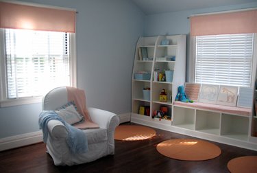 So E and I hung the canvases up over her bed, and then she thought that they needed to be spaced out a little more, and I agreed. So I did.