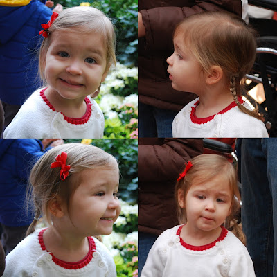 One of the reasons I have this camera focused on this one so much is because of the expressiveness of her face. Occasionally she catches me watching, but for the most part she’s in her own little world – talking or singing to herself, acting out a series of conversations with the things around her. Here she is taking in the Christmas trains at the garden for the second day in a row.