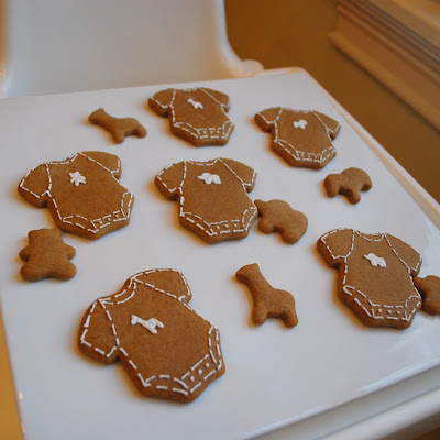 The take home favors for the baby shower were these gingerbread onesies with some coordinating baby animal toys. I love this gingerbread recipe – it’s always a favorite. It cuts beautifully into cookies that hold their shape and are sturdy enough for packaging, but when you bite into it, it’s super soft and heavy on the ginger. I was particularly happy with these cookies – sometimes simple and sweet (and a little bit spicy) is just the ticket.
