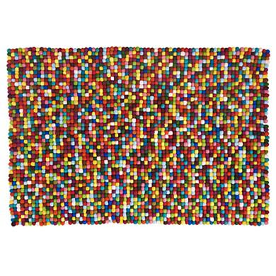 I saw this rug last night in the latest Land of Nod catalog. It’s all kinds of fuzzy, colorful wonderfulness. I’m not sure how all those felted balls feel on the feet, but I’d sure like to try it out for fun.