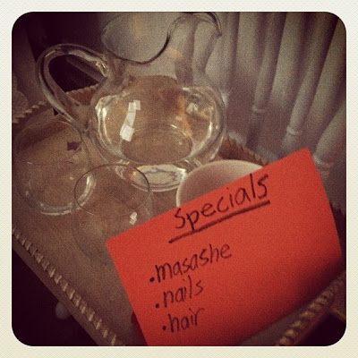 One of the gifts E gave me for Christmas was a brochure to attend her personal spa. It had coupons for various services, and it also included some money for those additional services that I might want. Various things have kept us busy on Saturday and Sunday afternoons, but this past Sunday was a little quieter. I’ve been battling a sinus infection or some sort of related bug, so it was nice to just relax for awhile and be pampered. Especially the masashe part!