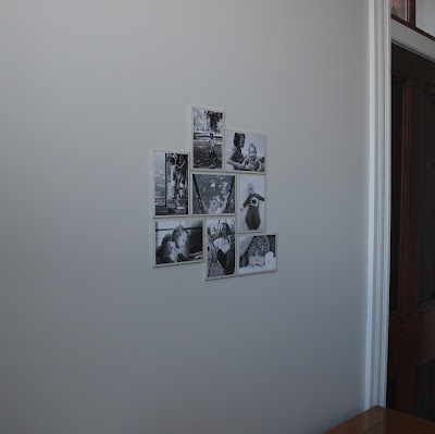I started this wall many years ago, long before F came into the picture. These were very inexpensive clip frames from IKEA, and I hung them randomly on the wall and slowly filled them with black and white photos. The unfilled frames have plain white paper in them. There were a couple of things that I liked about this wall – I liked how easy and inexpensive it was to get some photos up on the walls, and I liked how these were favorite moments of ours over the course of many years. I should have kept updating them, and adding new photos when F was born, but like the rest of my ongoing photo projects – I just didn’t keep it up.