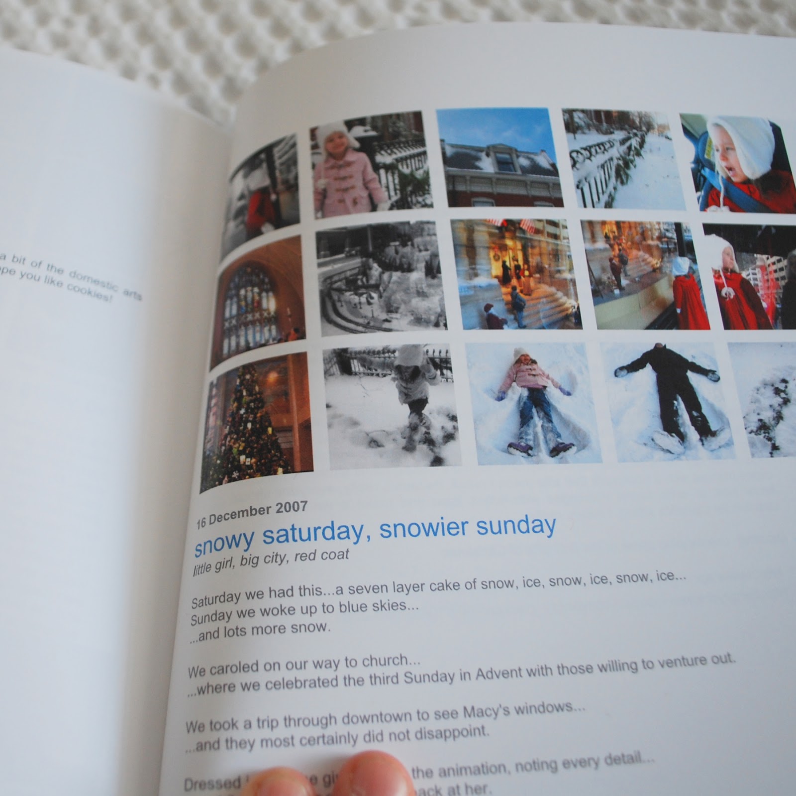 If it seems a little thin, well, that’s because I haven’t actually published the whole blog. This is just year number one (2007), and I also have to point out that I started that year in August. Late August. This thing is going to look like an encyclopedia when I get it finished. Our home computer is almost nine years old which makes it a dinosaur. It is SO slow. I pushed my way through on this small volume, but we’re thinking of taking advantage of a computer sale through M’s work this weekend to upgrade around here. I don’t plan on doing the other 3000+ pages until we have something that moves at greater than a snail’s pace. But this is still exciting, and makes me want to tackle the rest of them this year.