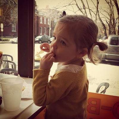 F channels Louis Prima above, and shares a big dog with E and my favorite sandwich with me – the Memphis Stax. It’s not on the menu, but they’ll make it for you if you ask (BBQ w/ cole slaw on top). And once they know you (it won’t take long) they’ll make it for you before you even get up to order it.