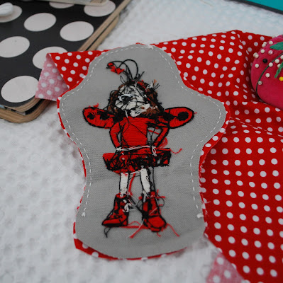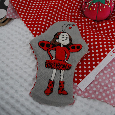 I picked up this Sarah Jane Studios fabric at Fabric Nosherie last weekend, along with a few other fat quarters of fabric loveliness. I thought it would be perfect for the back of my Ladybug Girl.