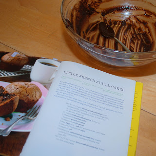 This past Tuesday I didn’t get home until nine thirty at night. I needed to make a dessert for a birthday at work the next day (a tradition I’ve tried to keep for the last four or five years), but I knew that I couldn’t stay up for hours that night. These little french fudge cakes from How to Eat Supper by Lynne Rossetto Kasper are a good go-to dessert. The recipe makes six, but doubles easily. It’s the kind of dessert you can put together with ingredients you have on hand – no mixer, short baking time – and they are divine right out of the oven with gooey, melty chocolate on the inside.