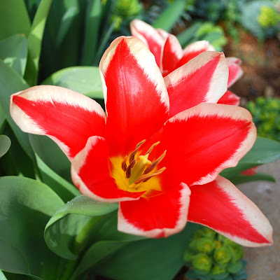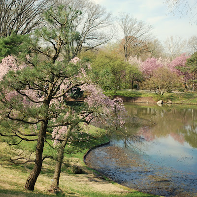 saturday morning at the garden Posted on March 22, 2012 by thirdstoryies The jewel tones might ring in through the emerging bulbs and the sunkissed stained glass windows at the end, but as far as early spring goes – the pinks have it.