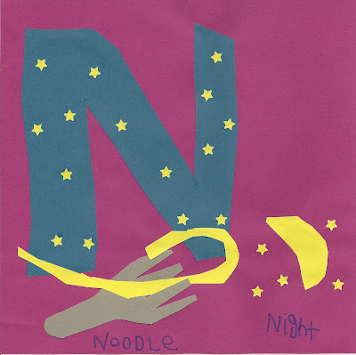 These were all paper collages, and the letter pages were done by E, while I made the covers for each book. We published them in paperback using Blurb. They were lots of fun. Here’s the first: