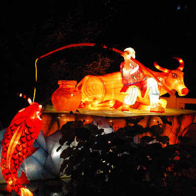 Saturday night after F’s party, we gathered with family and friends at the garden to see the lanterns light up. If you are anywhere nearby, put this on your summer to-do list. The lanterns are incredible – but so are some of the other things to see. I highly recommend the sand art show inside in the theatre. For me, it was one of the highlights of the show. When those giant dragons made out of porcelain plates and teacups start moving and blowing out steam – well that’s pretty cool too. A fun ending to a really fun day.