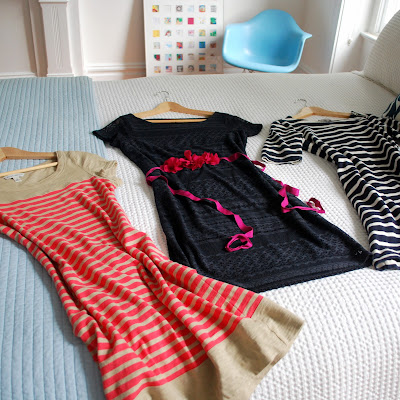 …and even some dresses. Try to hide your shock. I think I’ve been so conservative with spending money on clothing that I had fallen into the trap of thinking that spending money on a dress was a splurge. I’ve gotten a ton of wear out of these dresses, and you can’t wear a dress if you don’t have one, right? I could live in my latest acquisition – the one on the right. It is a pretty thick fabric, with three quarter length sleeves that you better believe I’ll be layering through the fall. If I were the burying type I’d like to be buried in that thing. I’d live an eternally comfortable life. That middle one is also amazingly comfortable – stretchy lining with a lace overlay – and then I throw that pink belt on that my sister gave me. Look at me, talking like I know what I’m doing.