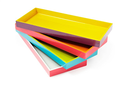 I saw these trays months ago on One Kings Lane but didn’t purchase them at the time. As I’ve been thinking about ways to organize and store art supplies / paper supplies / office supplies on the new open shelving for the back room, I’ve kept my eyes open for inexpensive ways to add color and order to those new shelves. When these popped back up on One Kings Lane I took the plunge. I may use them all in the back room, but I could see these ending up in various places around the house. I’m hoping they are as cute in person as they are on my computer screen.