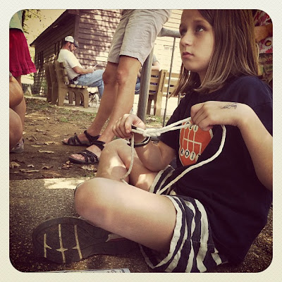 We did some hiking and some biking, lunching, and then some knot tying. We learned about eight knots – but after each knot was billed as “The most important knot you can know. The knot that will save your life. The knot that will save your friend’s life. The knot that will establish world peace.” we felt a little overwhelmed by the weight of our knot-knowledge, and headed out to the beach. We found our own little island that only required a moderate amount of risk to reach. No children were swept away in the current, and they spent the rest of the afternoon digging in the sand and the rocks, finding animals and zipping in and out of the faster moving water.