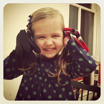I picked up some mittens as well for the mitten tree. I noticed an overabundance of pink and purple ones last Sunday, so I got a couple of darker / brighter ones. And someone sprouted mitten ears for a bit.