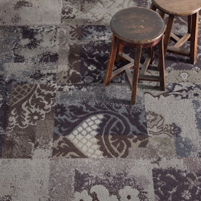 I’m currently admiring this rug for the living room – it’s one of the finalists, and I ordered a sample a few weeks ago and really like it. It’s Dream On from Flor, and although the colorway is called brown, it’s mostly gray with some blues and plums and russets. It coordinates well with the dark plummy-red hardwood floors, and it looks good with the gray walls too.