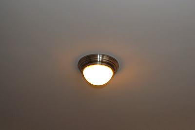 This light came from Restoration Hardware (cha-ching), purchased with some of those (much beloved) Restoration gift certificates we got as housewarming gifts. It’s also in great shape, but we’ve replaced it with a pendant light in this space because our ceilings are so high. Finish is a brushed nickel. I’ll have to get the measurements for you – I can’t remember the diameter, but it was the largest size, so based on the current offerings at RH, I’m guessing it’s about 17″ in diameter. It looks small in this photo because I’m taking the picture without zoom from about six feet below.