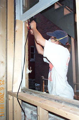 At one point in the process we priced historic replacement windows for the entire house. We took one look at those numbers ($1000+ a window) and decided we’d rebuild them ourselves. We removed them, stripped paint and glazing putty, reglazed them, painted and reinstalled. We kept the storm windows on the side windows, but we left them off the front (too ugly). Replacing those windows with insulated units is on the to-do list now, but it was out of the question in the beginning. So if you came to visit us, you came to work. Our parents did a lot of that visiting and working, for sure.