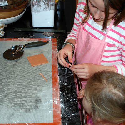 …and then gets to working on the fondant. I saw the ruler out in several of the photos, and the stacks of perfectly cut squares. I asked her how she made the indentations and she told me they used the game board itself to do it.