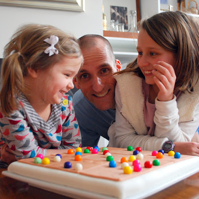 I can’t believe their dad said “You want to make a Colorku board out of cake and icing and fondant? Sure, why not?” and then made countless trips to pick up just the right ingredients for the job. I can’t believe that when they realized they didn’t have a light green gumball to match the light green marbles, they all collectively sucked on the dark green balls for just the right amount of time to make them light.