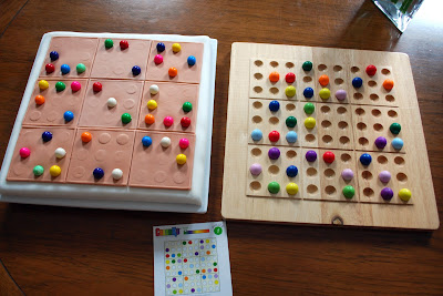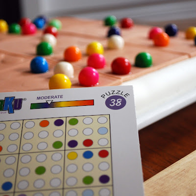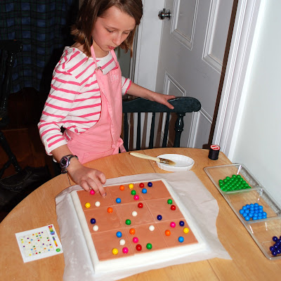 Apparently they searched for a card with thirty-eight marbles on it, but only found thirty-seven so they added one more to the cake. Still – you could solve this one if you wanted to. She “glued” the balls onto the cake with a little corn syrup, and pressed them in enough that they look like they are resting in holes on the board.