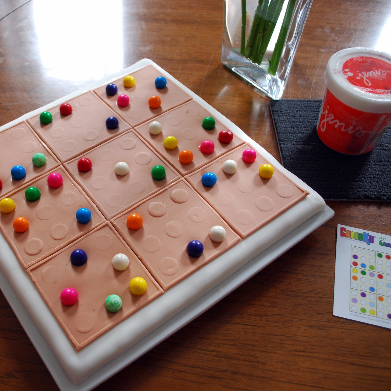 I can’t believe their dad said “You want to make a Colorku board out of cake and icing and fondant? Sure, why not?” and then made countless trips to pick up just the right ingredients for the job. I can’t believe that when they realized they didn’t have a light green gumball to match the light green marbles, they all collectively sucked on the dark green balls for just the right amount of time to make them light.
