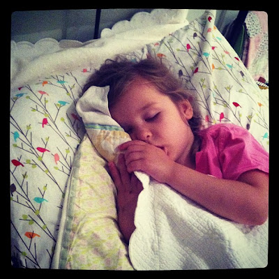 (That’s real sleeping below.) She looked so enormous in her last bed, and now she looks so tiny in this one. But I remember her almost nine year old sister, and how she looked sprawling across this bed last summer. F asked when she gets E’s red bed and I told her when she goes away to college. And then I got this huge lump in my throat.