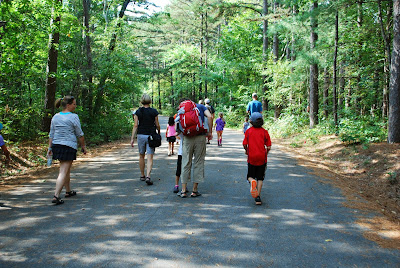 Earlier in the morning the group went on a hike, stretching out along the path, kids and grownups in a line.