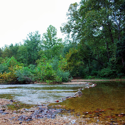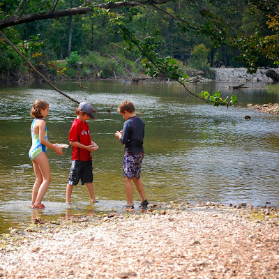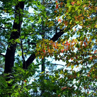The leaves were just starting to turn, and some bright reds one were scattered along the path like sign posts. The little ones looked for sparkling fairy gold and came down with heavy pockets of precious rocks.